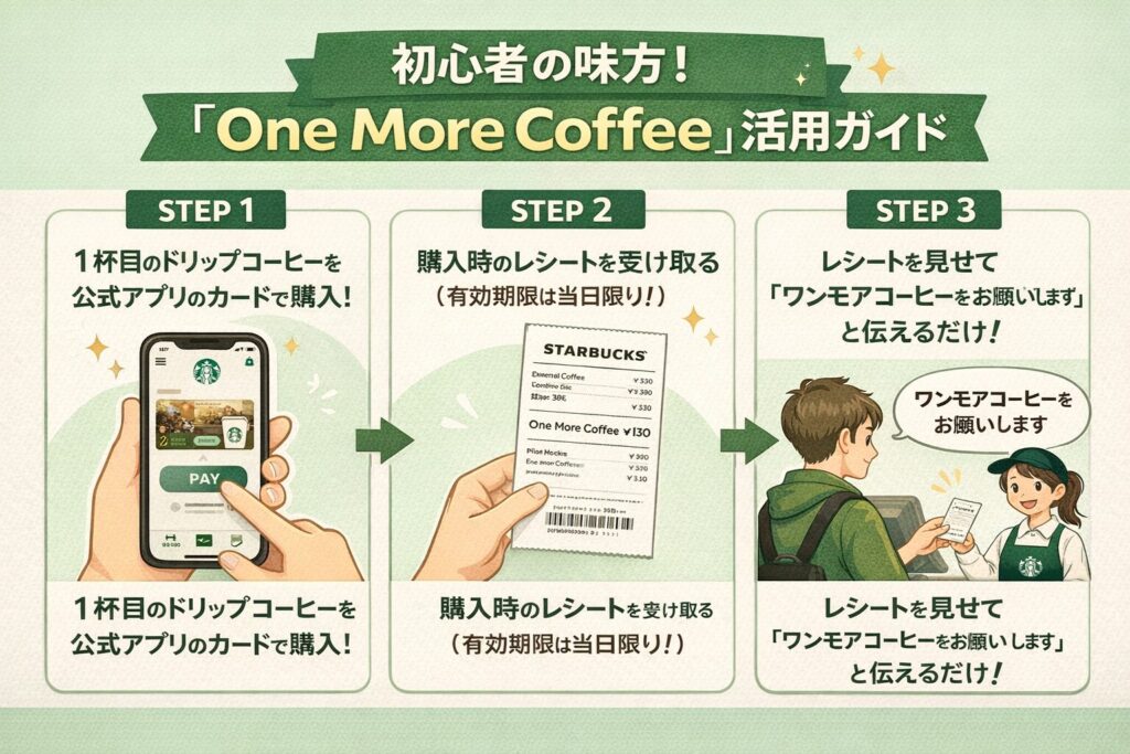 スターバックスとOne More Coffeeの関係性は、まさに「長時間の滞在をシステムとして歓迎している」というお店からの明確なメッセージです。この制度があることで、あなたは「おかわりするのは図々しいかな?」などと悩む必要は一切ありません。むしろ、制度を賢く利用する「スマートな常連客」として、堂々と2杯目を注文できるのです。